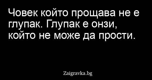 Човек който прощава не е глупак. Глупак е онзи, който не може да прости.