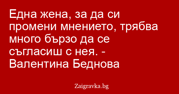Една жена, за да си промени мнението, трябва много бързо да се съгласиш с нея. - Валентина Беднова