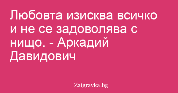Любовта изисква всичко и не се задоволява с нищо. - Аркадий Давидович