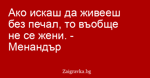 Ако искаш да живееш без печал, то въобще не се жени. - Менандър