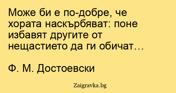 Може би е по-добре, че хората наскърбяват: поне избавят другите от нещастието да ги обичат…