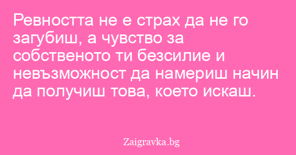 Ревността не е страх да не го загубиш, а чувство за собственото ти безсилие и невъзможност да намериш начин да получиш това, което искаш.
