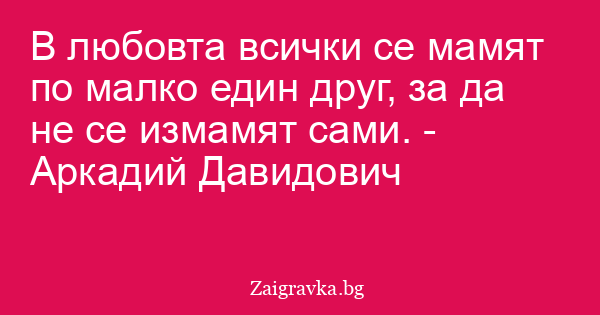 В любовта всички се мамят по малко един друг, за да не се измамят сами. - Аркадий Давидович