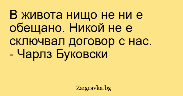 В живота нищо не ни е обещано. Никой не е сключвал договор с нас. - Чарлз Буковски
