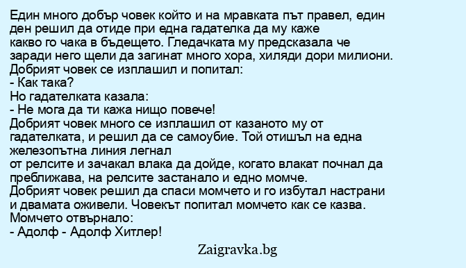 Един много добър човек който и на мравката път правел, един ден решил да отиде при една гадателка да му каже