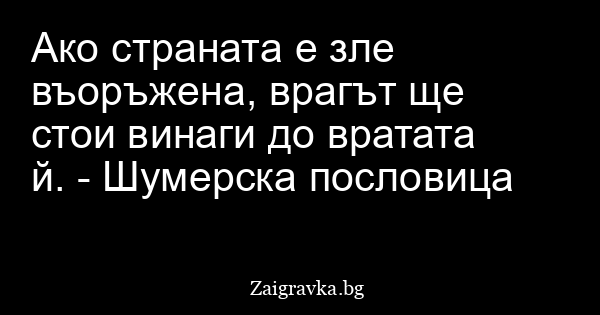 Ако страната е зле въоръжена, врагът ще стои винаги до вратата й. - Шумерска пословица