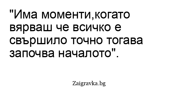 "Има моменти,когато вярваш че всичко е свършило точно тогава започва началото".