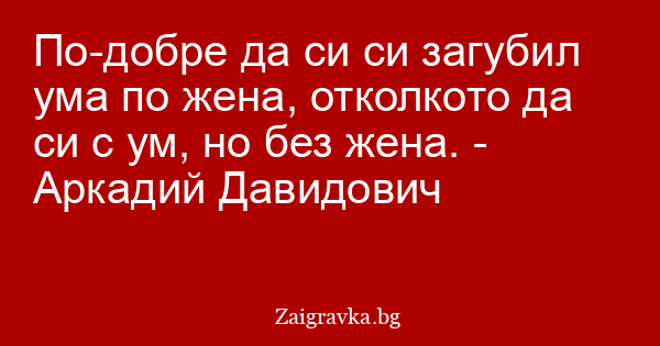 По-добре да си си загубил ума по жена, отколкото да си с ум, но без жена. - Аркадий Давидович