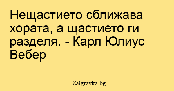 Нещастието сближава хората, а щастието ги разделя. - Карл Юлиус Вебер