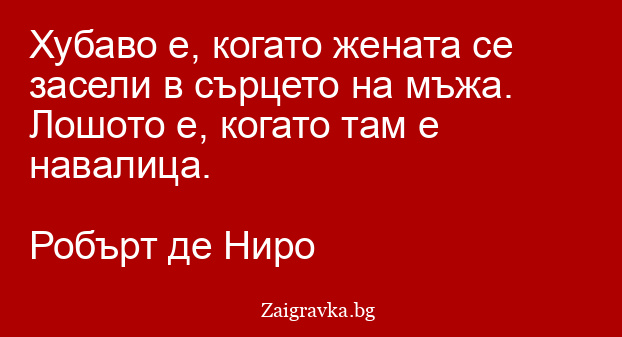 Хубаво е, когато жената се засели в сърцето на мъжа. Лошото е, когато там е навалица.