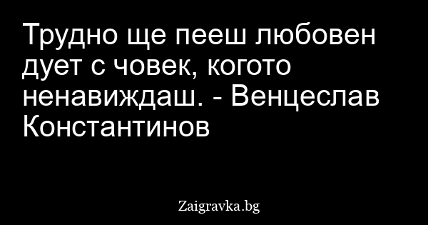 Трудно ще пееш любовен дует с човек, когото ненавиждаш. - Венцеслав Константинов