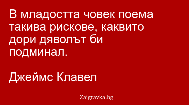 В младостта човек поема такива рискове, каквито дори дяволът би подминал.