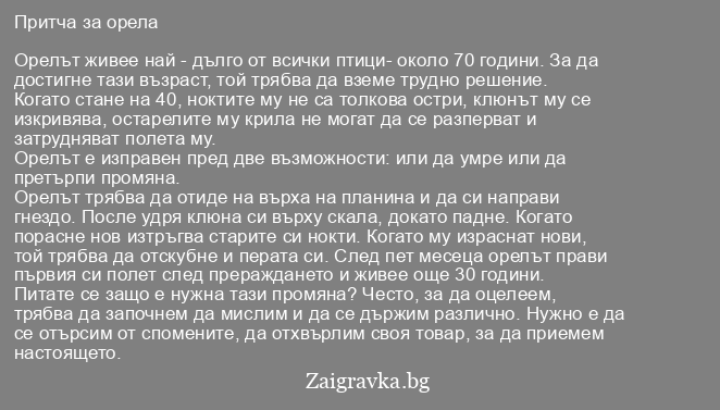Орелът е изправен пред две възможности: или да умре или да претърпи промяна.