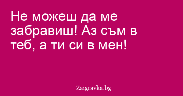 Не можеш да ме забравиш! Аз съм в теб, а ти си в мен!