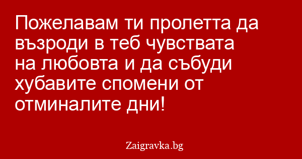 Пожелавам ти пролетта да възроди в теб чувствата на любовта и да събуди хубавите спомени от отминалите дни!