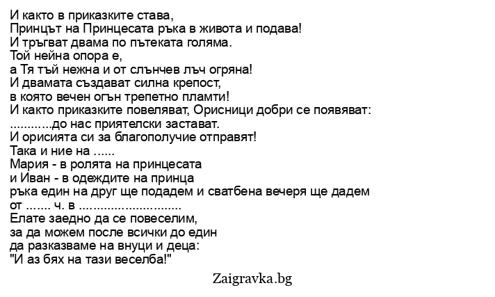 Светото венчание ще започне в ...... часа в храм „.................”.