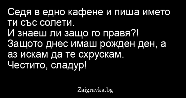 Защото днес имаш рожден ден, а аз искам да те схрускам.