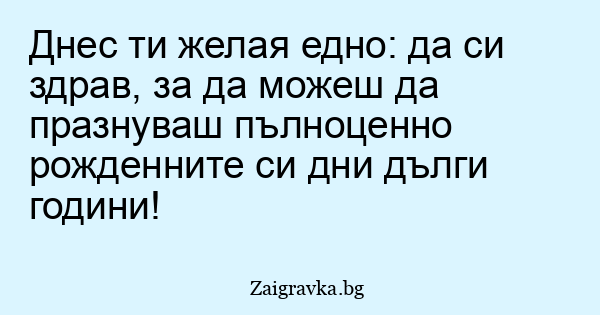 Днес ти желая едно: да си здрав, за да можеш да празнуваш пълноценно рожденните си дни дълги години!