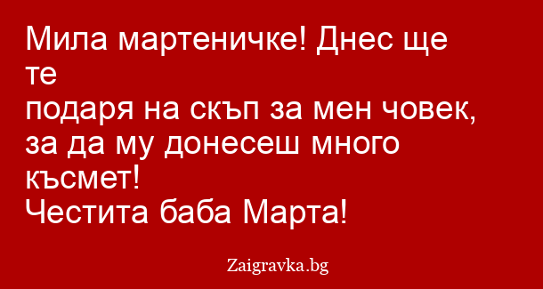 Мила мартеничке! Днес ще те
