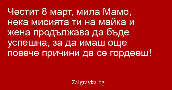 нека мисията ти на майка и жена продължава да бъде успешна, за да имаш още повече причини да се гордееш!