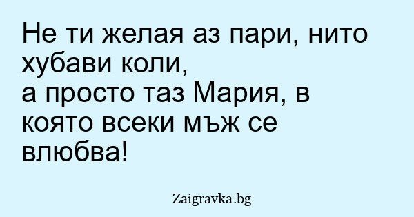 Ако на твоя имен ден Мария няма торта пак ще дойда, защото времето прекарано с теб е по-сладко от всичко друго на света!