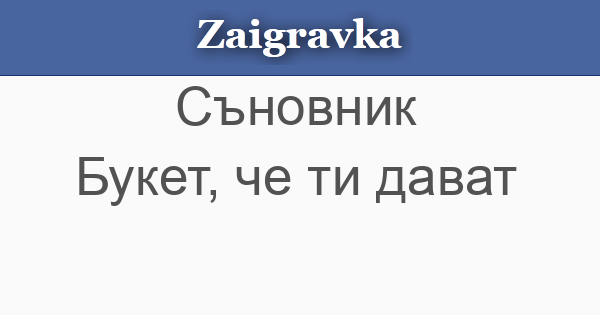 • Букет, че ти дават - любимата ти ще те покани на среща; - ако е от теменуги-предстои ти взаимна любов; - ако е от рози-ще се ожениш.