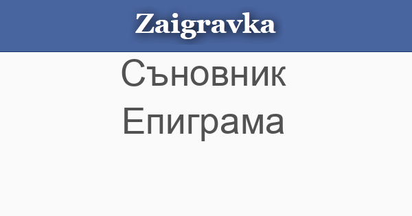 Заигравка » Съновник » Епиграма абвгдежзийклмнопрстуфхцчшщъьюя Епиграма • ЕПИГРАМА - Ако сънувате, че четете епиграма - притеснява ви някакво безпокойство и не случайно. « Предишна Следваща »