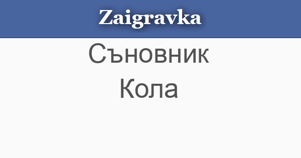 • КОЛА - Ако сънувате кола - ще имате препятствия в работата си; ако катастрофирате с нея - ще загубите пари; ако я карате - злополука; ако е волска - добри известия за децата ви; ако е биволска - семейни проблеми.
