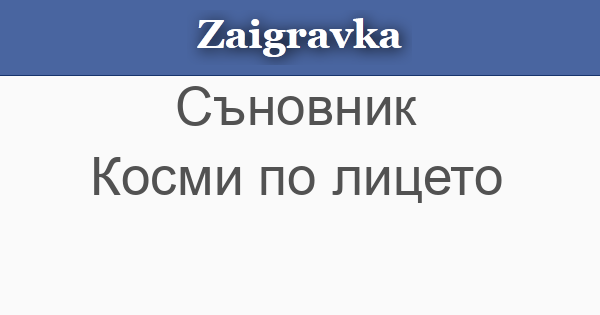 Заигравка » Съновник » Косми по лицето абвгдежзийклмнопрстуфхцчшщъьюя Косми по лицето • Сънуваш ли, че имаш или някой друг има косми по лицето, предстоят ти изгарящи емоции. « Предишна Следваща »