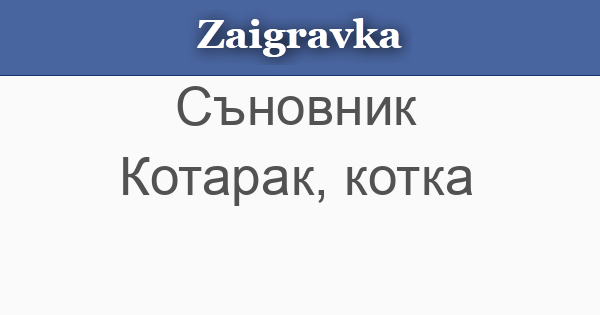 • КОТАРАК, КОТКА - ако видиш насън, ще станеш жертва на измама. Ако ловиш котки, любовта все ще ти се изплъзва. Ако си играеш с котка, чака те изневяра или предателство. Ако котка те ухапе или одраска, ще се бориш за справедливост, ще търсиш истината. Много котки в съня са знак, че имаш потайни, прикрити врагове. Бяла котка е знак за женска лъжа, черна - за опасен заговор срещу тебе. Мъркаща котка предсказва, че ще покориш труднодостъпен партньор. Ако галиш котка, съперник ще признае достойнствата ти. Котка с котенца ако сънуваш, ще се задомиш или ще имаш потомство. Котешко мяучене ако чуеш насън, ще разбереш, че си бил мамен в любовта, или ще се разтрогне бракът или годежът ти.