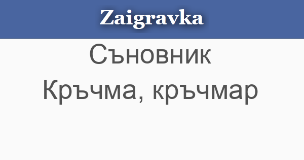 • КРЪЧМА, КРЪЧМАР - ако видиш насън, чака те весел и безгрижен живот. Ако си в кръчма, предстоят празници и приятелски събирания. Ако ти си кръчмар, чуждото удоволствие ще бъде на твой гръб и за твоя сметка.