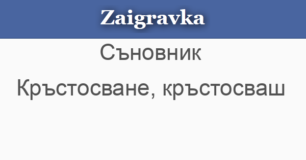 • КРЪСТОСВАНЕ, КРЪСТОСВАШ - ли стая от единия до другия край насън, чака те радостна новина. Ако кръстосваш пътища, скоро няма да се установиш на постоянно място. Ако кръстосваш ръцете си, ще откажеш доходна работа или ще се побоиш от изгодно предложение. Ако кръстосваш краката си, ще отбягваш любовник или ще отблъснеш предложение за женитба.