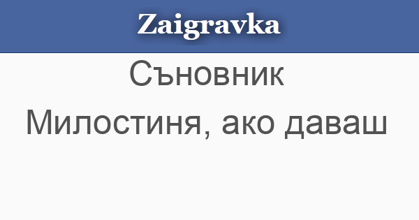 Заигравка » Съновник » Милостиня, ако даваш абвгдежзийклмнопрстуфхцчшщъьюя Милостиня, ако даваш • Милостиня, ако даваш - работите ти ще се объркат и ще спрат. « Предишна Следваща »