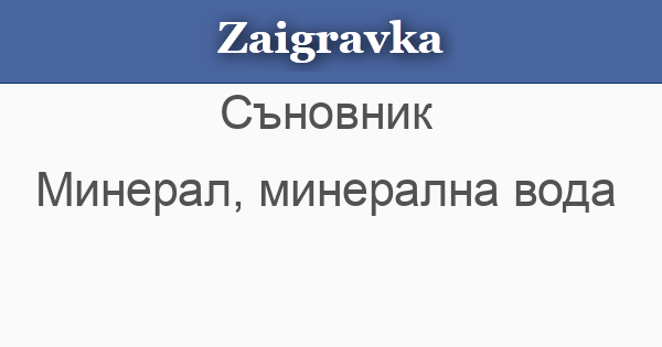 • МИНЕРАЛ, МИНЕРАЛНА ВОДА - в съня съобщават, че ще извлечеш полза от страничните си занимания, от хобито си или от удоволствията си.