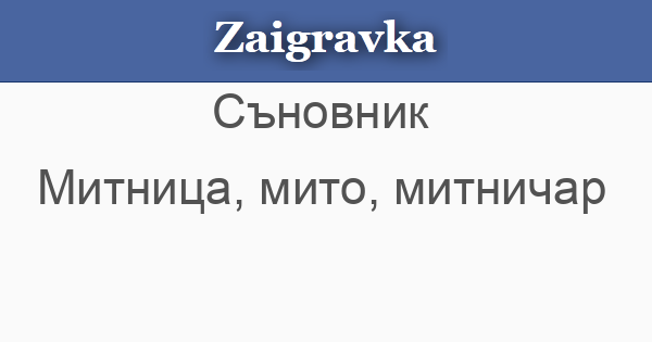 • МИТНИЦА, МИТО, МИТНИЧАР - ако сънуваш, че минаваш през митница, значи предстоят проверки и ревизии в работата ти. Ако плащаш мито, ще търпиш загуби в бизнеса. Ако си митничар, ще контролираш нечия работа. Друг ако е митничар, бъди готов за изненади и капани на служебното място.