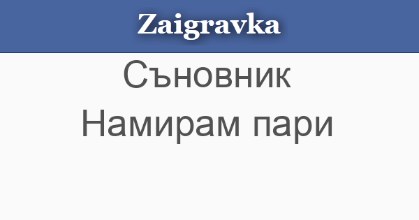 Заигравка » Съновник » Намирам пари абвгдежзийклмнопрстуфхцчшщъьюя Намирам пари • Сънуваш ли, че намираш пари, бъди предпазлив от обир или загуби. « Предишна Следваща »