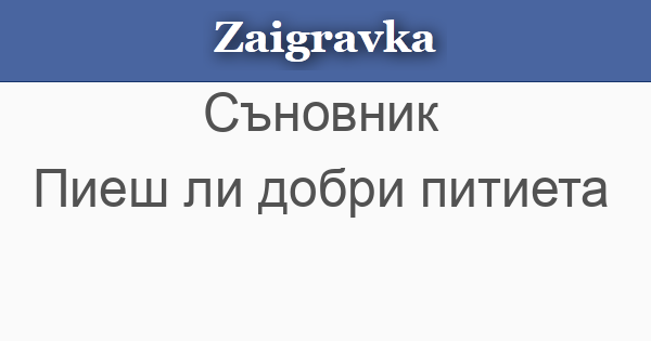 Заигравка » Съновник » Пиеш ли добри питиет абвгдежзийклмнопрстуфхцчшщъьюя Пиеш ли добри питиета • Пиеш ли добри питиета - благополучие. « Предишна Следваща »