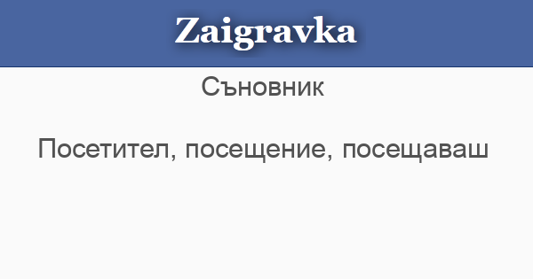 • ПОСЕТИТЕЛ, ПОСЕЩЕНИЕ, ПОСЕЩАВАШ - ли някого или нещо в съня си, наяве чакай гости или пратка отдалече. Тебе ако те посещават, предстои ти пътуване.