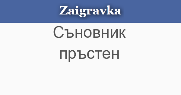 • ПРЪСТЕН - Ако сънувате пръстен - ще имате печалба; ако ви го подарят - имате дадена гаранция за любов; ако вие го подарявате - ще имате многобройно потекло; ако го загубите - лоши преживявания; ако е железен - трябва да положите големи усилия; ако е сребърен - ще положите полезен труд; ако е златен - ще живеете бедно, но щастливо.