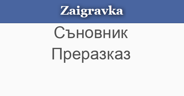 Заигравка » Съновник » Преразказ абвгдежзийклмнопрстуфхцчшщъьюя Преразказ • ПРЕРАЗКАЗ - Ако сънувате или пишете преразказ - ще се зарадвате на ваш познат; ако го четете - неочакван успех. « Предишна Следваща »