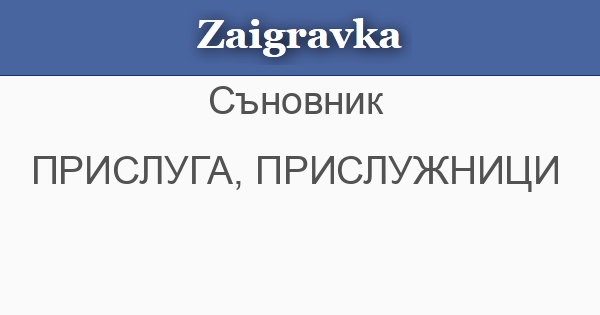 • ПРИСЛУГА, ПРИСЛУЖНИЦИ (виж СЛУГА) - че имаш, ако сънуваш, не сключвай прекалено обвързващи сделки и договори. Ако насън прислужниците в дома ти се карат помежду си, в семейството ти ще възникнат затруднения.