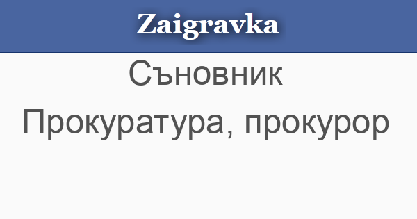 • ПРОКУРАТУРА, ПРОКУРОР - че си, ако сънуваш, някой ще изобличи дребните ти тайни и шмекерии. Друг ако е прокурор, трябва да бъдеш по-снизходителен към хорските слабости.