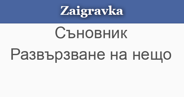 Заигравка » Съновник » Развързване на нещо абвгдежзийклмнопрстуфхцчшщъьюя Развързване на нещо • Развързване на нещо - ще намериш нещо, което отдавна си загубил. « Предишна Следваща »