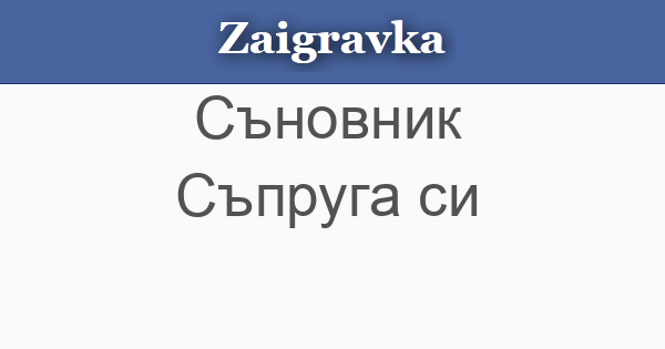 Заигравка » Съновник » Съпруга си абвгдежзийклмнопрстуфхцчшщъьюя Съпруга си • Присъни ли ви се брачната половинка, това е знак, че между вас ще има недоразумения и кавги. « Предишна Следваща »