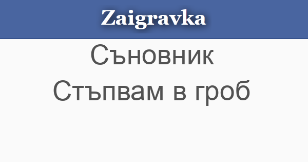 Заигравка » Съновник » Стъпвам в гроб абвгдежзийклмнопрстуфхцчшщъьюя Стъпвам в гроб • Стъпваш ли насън в гроб, значи ще имаш много пари или ще се обвържеш. « Предишна Следваща »