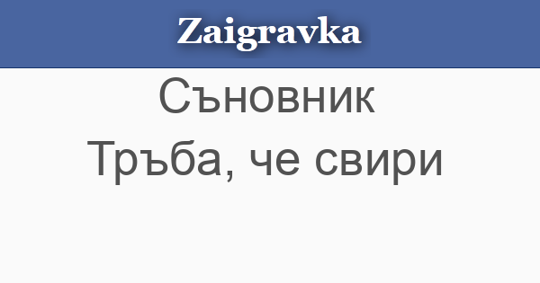 Заигравка » Съновник » Тръба, че свири абвгдежзийклмнопрстуфхцчшщъьюя Тръба, че свири • Тръба, че свири - важна новина. « Предишна Следваща »