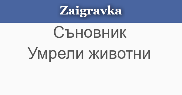 Заигравка » Съновник » Умрели животни абвгдежзийклмнопрстуфхцчшщъьюя Умрели животни • Ако сънуваш умрели животни, значи ще се избавиш от проблеми. « Предишна Следваща »
