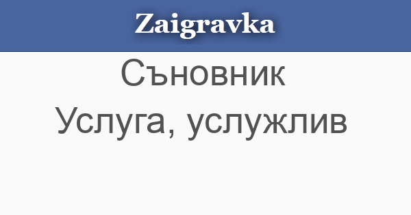 • УСЛУГА, УСЛУЖЛИВ - ако сънуваш, че правиш някому услуга, някой от близките ти ще те обиди или наскърби. Друг ако е услужлив в съня ти, ще се отнесеш грубо или несправедливо към роднина или приятел.