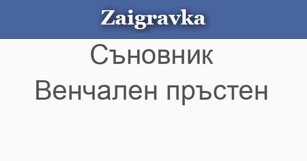 • ВЕНЧАЛЕН ПРЪСТЕН - да видиш, да дадеш или да вземеш насън, е знак за раздяла и сърдечна тъга. Ако насън изгубиш венчален пръстен, но после го намериш, значи ти предстои сериозна болест или друго изпитание, което в крайна сметка ще преодолееш. Ако не намериш изгубения венчален пръстен, изходът на болестта или изпитанието може да бъде фатален.
