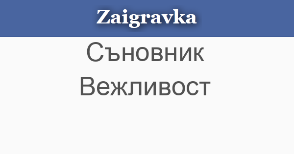 • ВЕЖЛИВОСТ - Ако сънувате, че сте вежливи - ще се забъркате в неприятна за вас сцена; ако друг е вежлив - благоприятни събития в семейството ви.